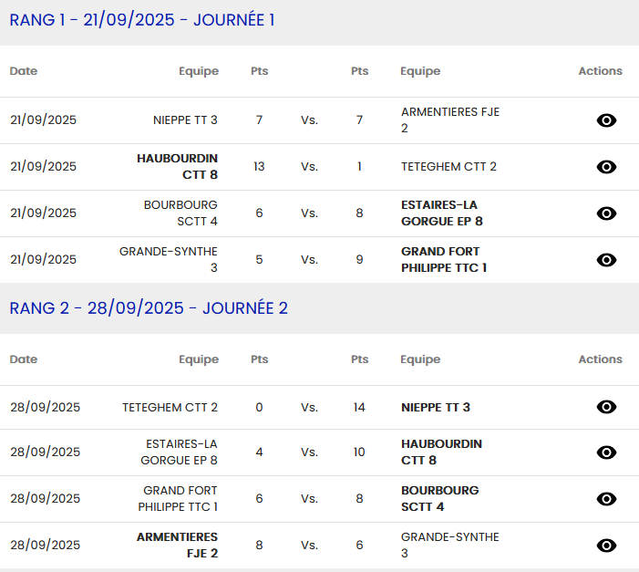 - NIEPPE 1 – Régionale 3 – Poule 12