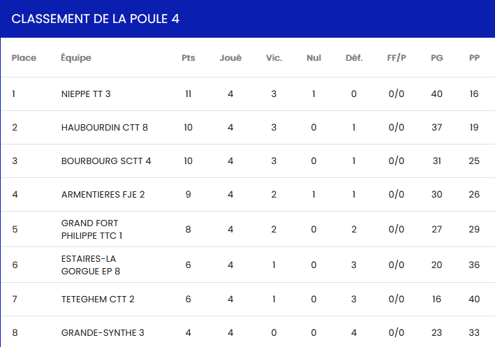 - NIEPPE 4 – Départementale 2 – Poule 3