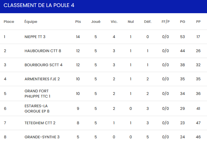 Départementale 1 – Poule 4 – Phase 1 – 2025 / 2026