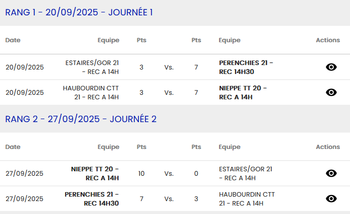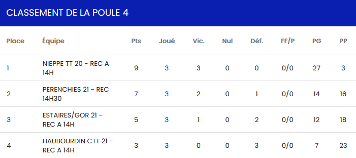 - NIEPPE 1 – Régionale 3 – Poule 12