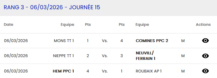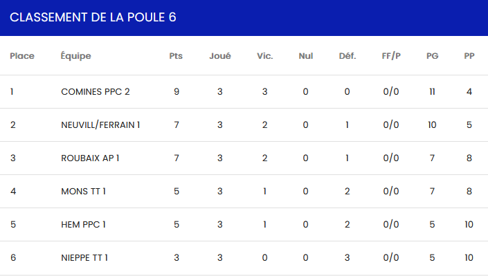 - NIEPPE 3 – Régionale 4 – Poule 23